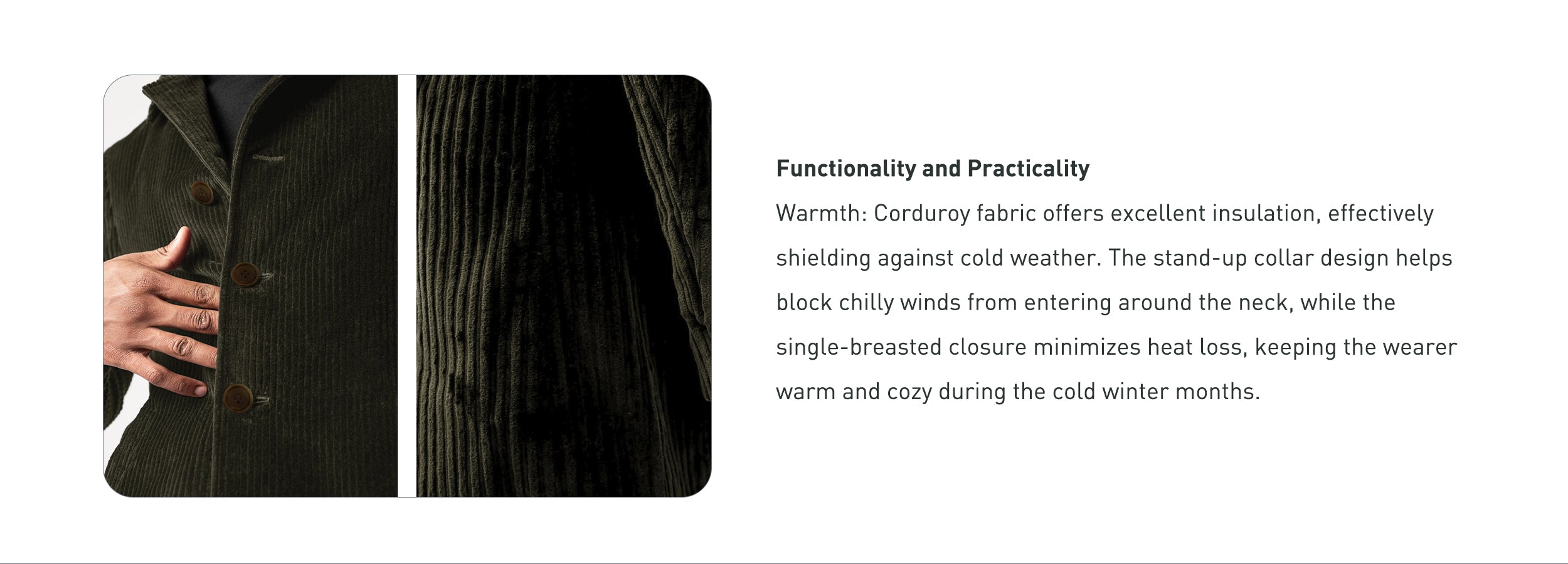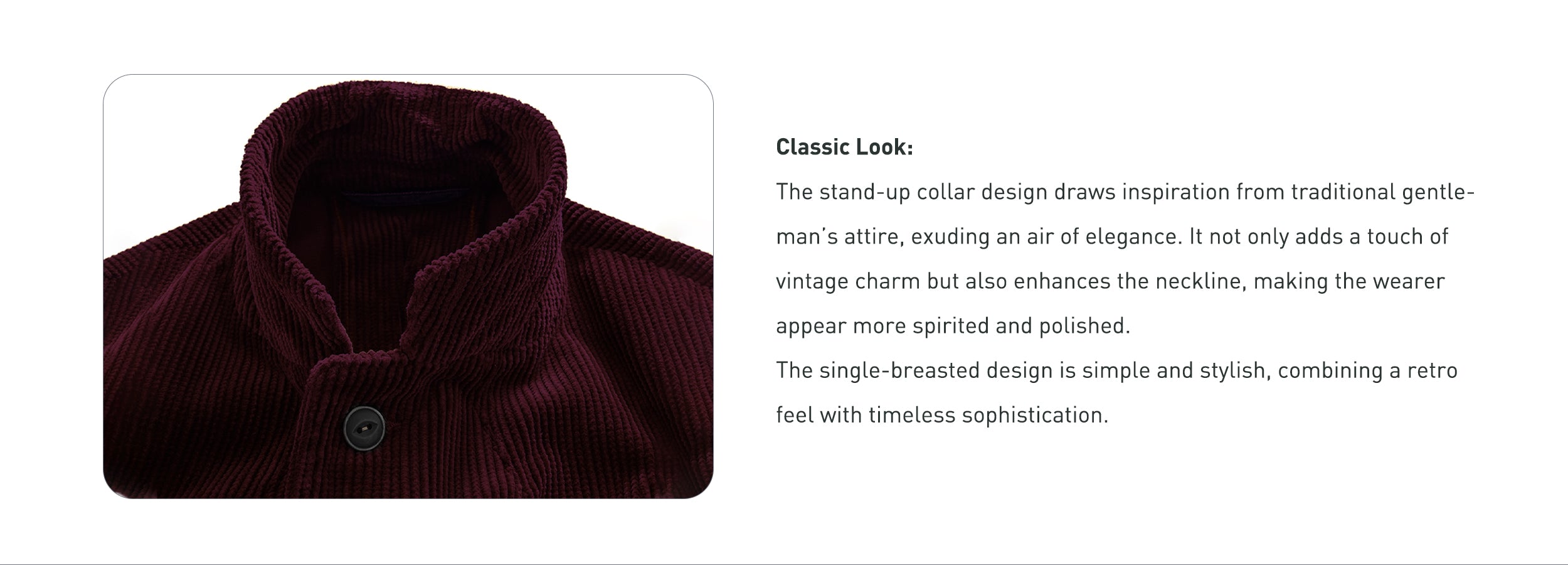 Men's Vintage Corduroy Stand Collar Single Breasted Slim Short Coat 9261100335288